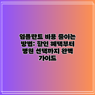 ✅ 임플란트 비용, 생각보다 줄일 수 있다고요? 병원 선택부터 할인 혜택까지, 비용 절감 전략을 지금 바로 확인하세요!