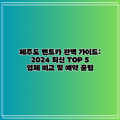 제주도 렌트카 완벽 가이드: 2024 최신 TOP 5 업체 비교 및 예약 꿀팁