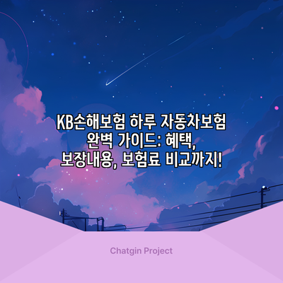 KB손해보험 하루 자동차보험 완벽 가이드: 혜택, 보장내용, 보험료 비교까지!