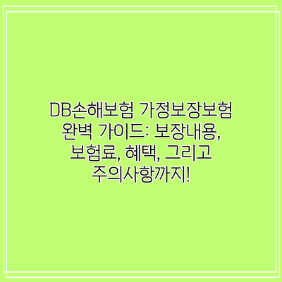 DB손해보험 가정보장보험 완벽 가이드: 보장내용, 보험료, 혜택, 그리고 주의사항까지!