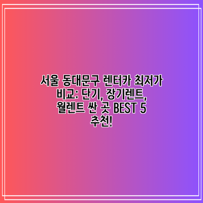 서울 동대문구 렌터카 최저가 비교: 단기, 장기렌트, 월렌트 싼 곳 BEST 5 추천!