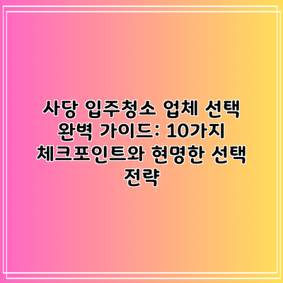 사당 입주청소 업체 선택 완벽 가이드: 10가지 체크포인트와 현명한 선택 전략