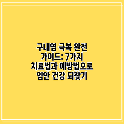구내염 극복 완전 가이드: 7가지 치료법과 예방법으로 입안 건강 되찾기