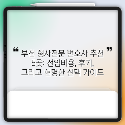 부천 형사전문 변호사 추천 5곳: 선임비용, 후기, 그리고 현명한 선택 가이드